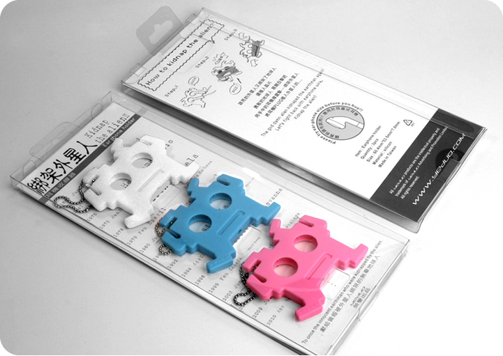 該死的外星人又綁架了地球人 還植入晶片 勇敢的地球人 展開反擊吧! 用手中的耳機線還擊-----綁架外星人 將耳機PLUG植入外星人的...... 產品:耳機捲線器 材料:矽膠 尺寸:54×62×7mm 售價:120NT (1入) 300NT (3入)